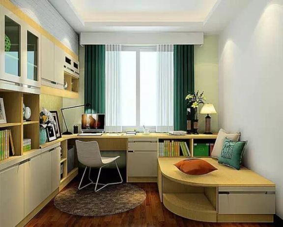 安靜是書房必備的,安靜的環(huán)境能夠快速靜下心來,進(jìn)入工作的狀態(tài), 才能辦事高效。在裝修時,可以選擇一些隔音和效果比較好的裝飾材料,在書房的天花板上,可以選擇用吸音的石膏來進(jìn)行吊頂,而書房的墻壁可以用軟包裝裝飾,比如墻紙;地面同樣可以使用吸引效果好的地毯;書房的窗簾需要選擇質(zhì)地比較厚的材料;這樣可以隔絕外面的噪音,從而進(jìn)入一個相對安靜的環(huán)境 。