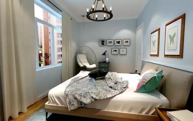 淺藍(lán)色墻面,沉靜自然,用在臥室最合適不過。
