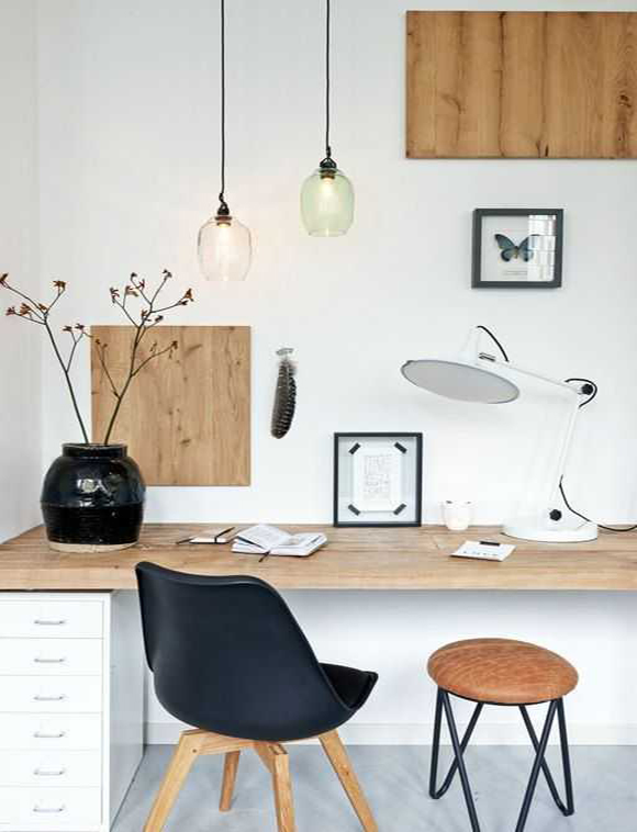 北歐風(fēng)工作臺:清新的淺色原木系桌子搭配可心的綠植,簡單舒適,在這樣的環(huán)境中工作,整個心情都明朗起來。