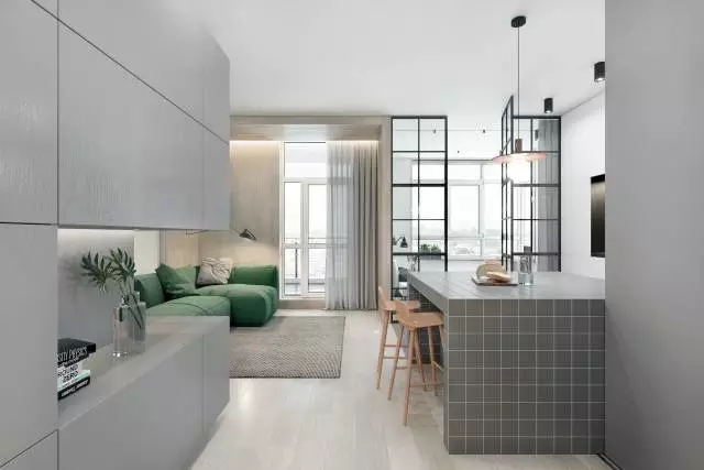 一道極具現(xiàn)代氣息的玻璃隔斷墻,