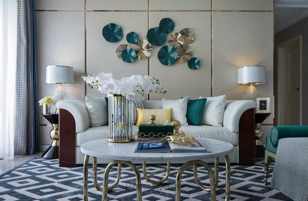 對(duì)于大戶型來(lái)說(shuō),更少的考慮面積,更多的考慮設(shè)計(jì)感,那么這兩面焦點(diǎn)墻的設(shè)計(jì),就相當(dāng)于室內(nèi)設(shè)計(jì)風(fēng)格的濃縮。新古典和新中式風(fēng)格的背景墻運(yùn)用到客廳,可保持風(fēng)格統(tǒng)一,時(shí)尚大氣有檔次。