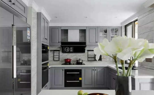現(xiàn)在流行的高級(jí)灰也可以“入駐”廚房,立馬提高了廚房的檔次和品味!