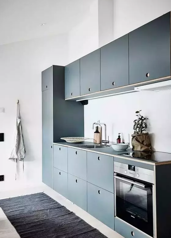 藍(lán)色櫥柜也很常見(jiàn),但絕不是辣眼睛的熒光藍(lán),而是深藍(lán)、蒂芙尼藍(lán),淺藍(lán),這些都是適合櫥柜的顏色。