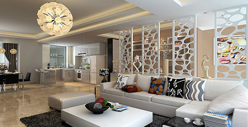 很多人習(xí)慣在客廳和餐廳之間使用屏風(fēng)之類的裝飾物進(jìn)行隔斷,其實(shí)用隔斷柜代替屏風(fēng)進(jìn)行隔斷,可以大大增加收納空間。例如上圖的客廳隔斷柜,最上面和中間是開放式的,不影響光線傳遞,還可以擺放部分裝飾品,既美觀又實(shí)用。