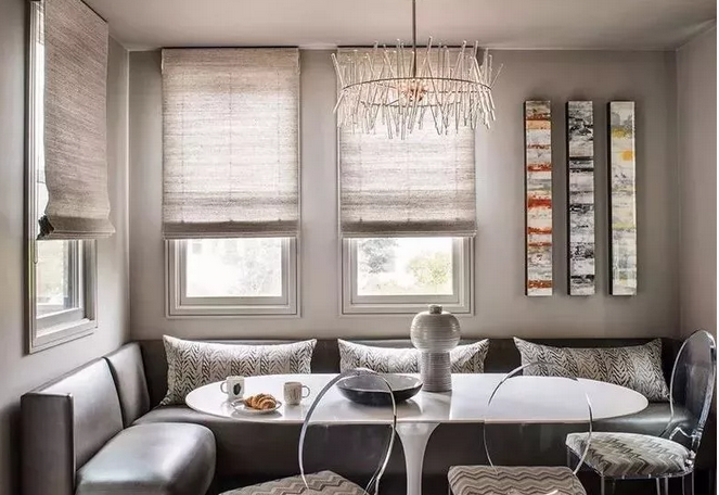 即使是尺寸很小巧的窗戶,也建議優(yōu)先考慮整個墻面的面積,如果你覺得浪費的話,那么這種或窄小或細高的窗戶還有另一種聰明的方式就是使用上下拉動的升降簾,比如卷簾、羅馬簾、百葉窗等,高度隨意調(diào)整,輕巧靈便。