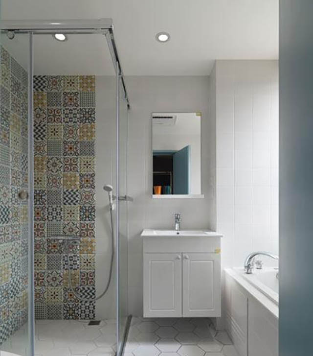 建議選擇尺寸較小的衛(wèi)浴產品,多增添收納空間,做好干濕分區(qū)。另外選用淺色的瓷磚提高空間明度可以使衛(wèi)生間看上去視覺上顯大一點。暗衛(wèi)的話可以安裝大吸力的排風系統(tǒng)。