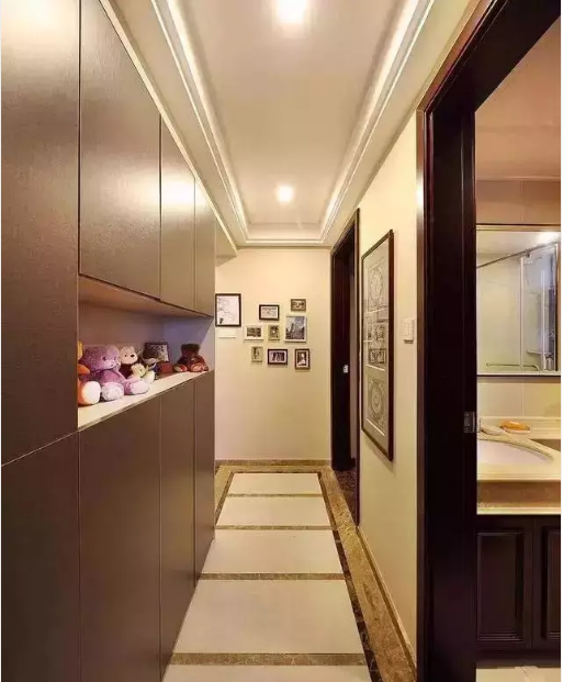 除了裝飾作用之外,走廊最重要是發(fā)揮實用性。其中,最常見的作用就是收納。無論是鞋子、衣物、書籍等,只有你想不到,沒有走廊收納做不到的。