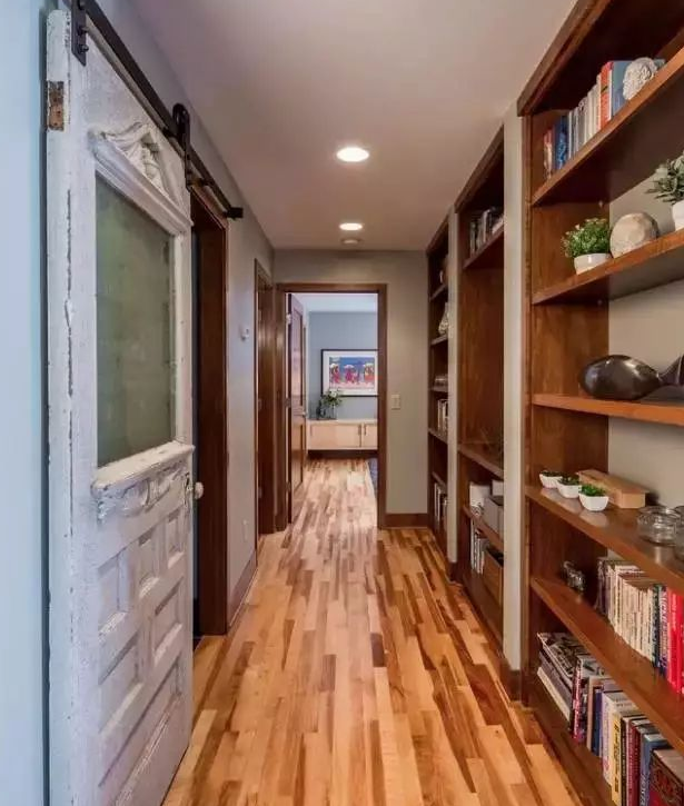寬度足夠的情況下,在走廊家裝小書柜,就可以把走廊改造成小型書房。喜歡看書買書的你再也用擔(dān)心書籍堆滿地。走廊書房,隨手就可以拿起想看的一本書。