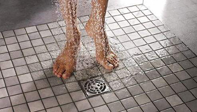 10、衛(wèi)生間地漏要做好坡度,不然洗澡的時候水下不去很不干凈!可以試著在邊上挖一圈溝槽再做地漏!