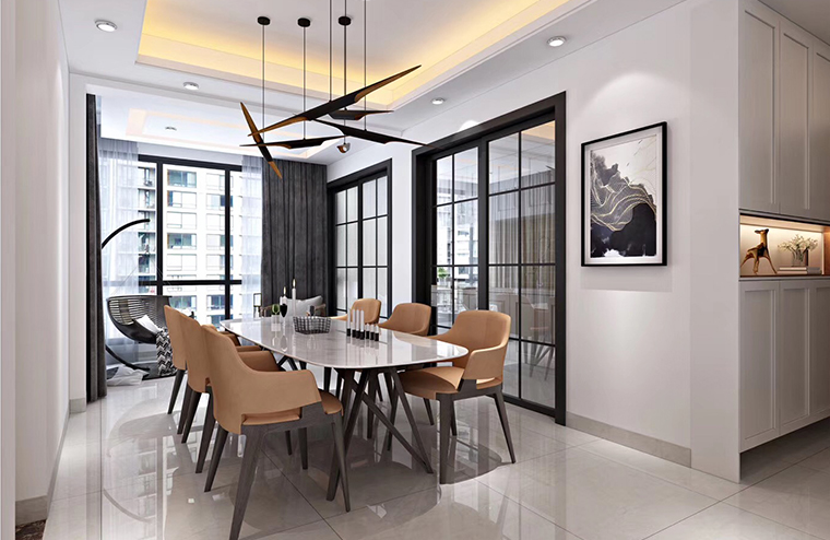 對(duì)于采光不好的餐廳來(lái)講,如果只是利用光源設(shè)計(jì)來(lái)進(jìn)行調(diào)整與改變,要知道餐廳裝修過(guò)程中本來(lái)就是忌諱使用大量的光源,這會(huì)使人們?cè)诰筒蜁r(shí)感到非常不舒服,而采用現(xiàn)代簡(jiǎn)約的裝修風(fēng)格,就算只是在一盞水晶吊頂的搭配下,也會(huì)令餐廳的光線十足,如圖,采用不吊頂?shù)暮?jiǎn)裝,但是天花板以淺色系的白色主打,配以淺色的地板,會(huì)令整個(gè)空間顯得簡(jiǎn)約而明亮,搭配以淺咖啡色的餐廳背景墻裝修,又令整個(gè)餐廳空間不那么單調(diào)與空洞。