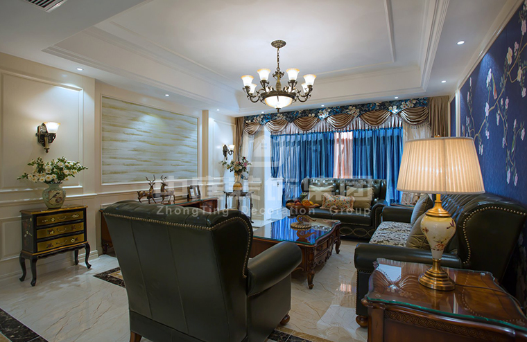 對(duì)于采光不好的客廳來(lái)講,其實(shí)也不需要太多的燈光源設(shè)計(jì)就么打造出一個(gè)不開(kāi)燈也很明亮的空間,由于現(xiàn)代很多客廳都與陽(yáng)臺(tái)相連,這樣就會(huì)令整個(gè)客廳的入深比較長(zhǎng),自然客廳采光也不那么好,尤其是樓層比較低的情況下,而采用不吊頂?shù)?/span>裝修設(shè)計(jì),讓乳白色的天花板與淺黃色的地板形成對(duì)比,拉出整個(gè)客廳的立體空間感,一盞中式風(fēng)格的羊皮吊燈配以沙發(fā)角處的落地?zé)簦耆軡M足整個(gè)客廳的照明需求,而且簡(jiǎn)約的豎長(zhǎng)壁紙電視墻裝修,又在視覺(jué)上拉長(zhǎng)了整個(gè)客廳的高度,配以從陽(yáng)臺(tái)處微透進(jìn)來(lái)的光線,整個(gè)客廳明暗適宜,溫馨又舒適。