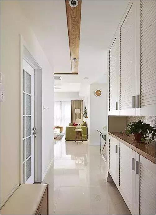 家里的柜子不能少,玄關(guān)鞋柜分上下兩層很實(shí)用,底部留空可以用來(lái)放鞋子。
