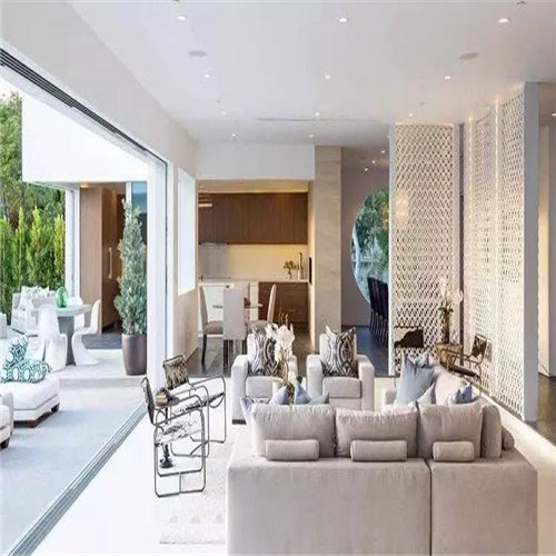 1、長條形的客廳在與餐廳等隔斷時,應(yīng)避免采用硬隔斷,因為本來空間就小,硬隔斷會使客廳看起來像個箱子一樣,給人壓抑感,而且也有可能影響采光。開放式的客廳餐廳可能效果會更好一些,不管是休閑還是吃飯,都不會覺得擁擠。對于不喜歡開放式的朋友來說,可以使用軟隔斷,比如用一個簾子或者鏤空的屏風(fēng)等,效果都會非常不錯。但是隔斷物的顏色不易太過厚重,以簡潔輕快為好。