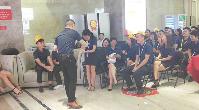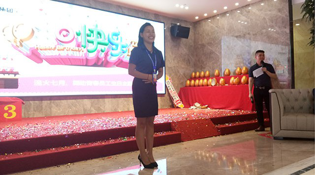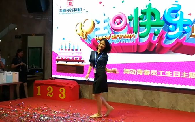 在生日會(huì)開始前,主持人與大家互動(dòng)發(fā)一小部分禮物,部分員工給大家準(zhǔn)備了三個(gè)小游戲,還給大家做了精彩的表演,并且贏得了陣陣掌聲。