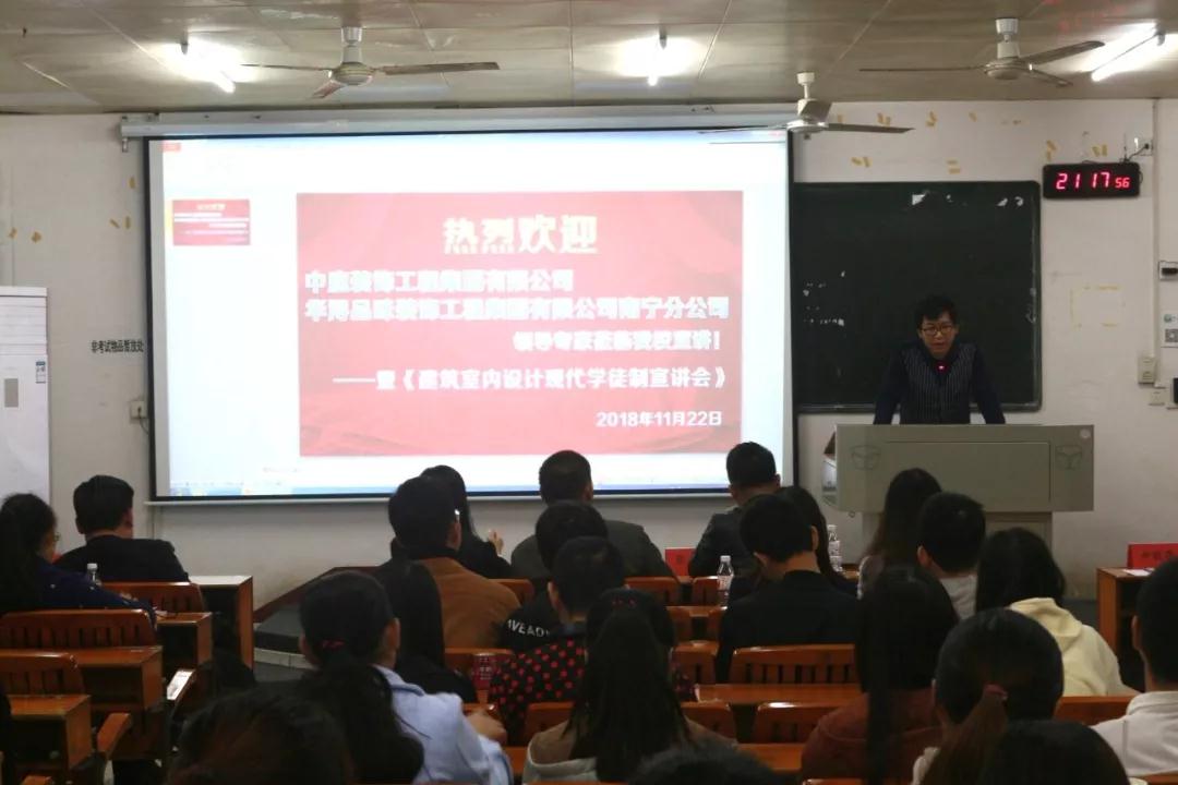 在前期的籌備活動中,已邀請過廣西農(nóng)業(yè)職業(yè)技術(shù)學(xué)院老師和學(xué)生來中庭裝飾集團進行過參觀與交流,彼此都留下非常好的印象,2018年11月22日,我公司張立安張總帶領(lǐng)營銷三部蘇家毅蘇經(jīng)理和人力資源部黃紅娟黃主管等人去到學(xué)院進行宣講,讓老師和學(xué)生們更加了解中庭裝飾集團,讓他們明白,選擇我們,是正確的。