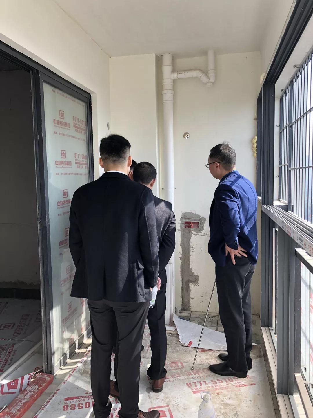 在參觀完中庭裝飾集團展示廳及樣板房后,丁總及集團領(lǐng)導(dǎo)陪同洪斯君先生一起來到了新民宿舍的工地,現(xiàn)場進行巡查和指導(dǎo)工作。
