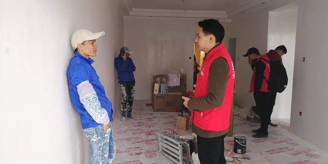 巡檢遇上業(yè)主正在施工現(xiàn)場,巡檢人員和業(yè)主交流;業(yè)主表示對公司的服務(wù)比較滿意,項目經(jīng)理和現(xiàn)場的工人都很好,有朋友需要裝修肯定會第一個推薦集團(tuán)。