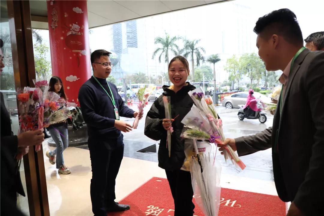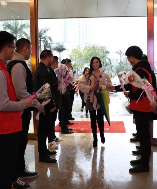 ▲營(yíng)銷管理中心王總給中庭女神送上節(jié)日禮物