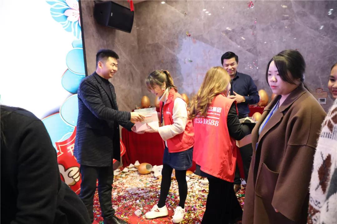 ▲集團(tuán)總裁丁總給中庭女神送上節(jié)日禮物