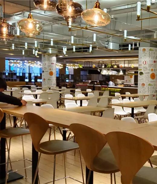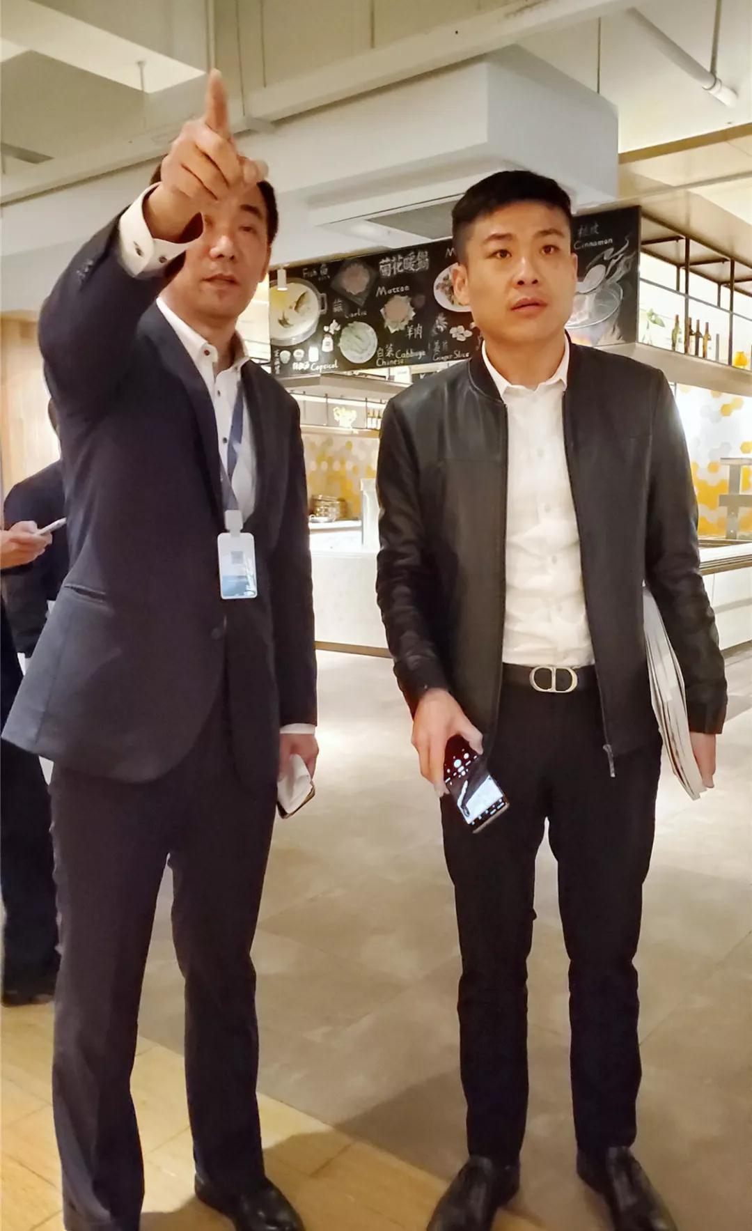 亞廈后勤服務中心總經(jīng)理向丁胡總裁介紹亞廈的員工食堂以及企業(yè)員工福利待遇的情況
