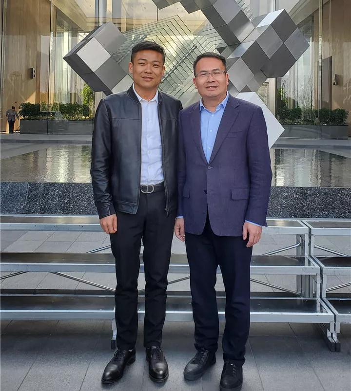 ▲丁胡總裁會上就裝配式家裝前景應用與亞廈董事長丁海富交流
