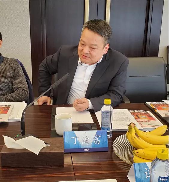 ▲會議間隙,丁胡總裁與亞廈董事長丁海富、浙江裝協(xié)副秘書長袁海泉交流