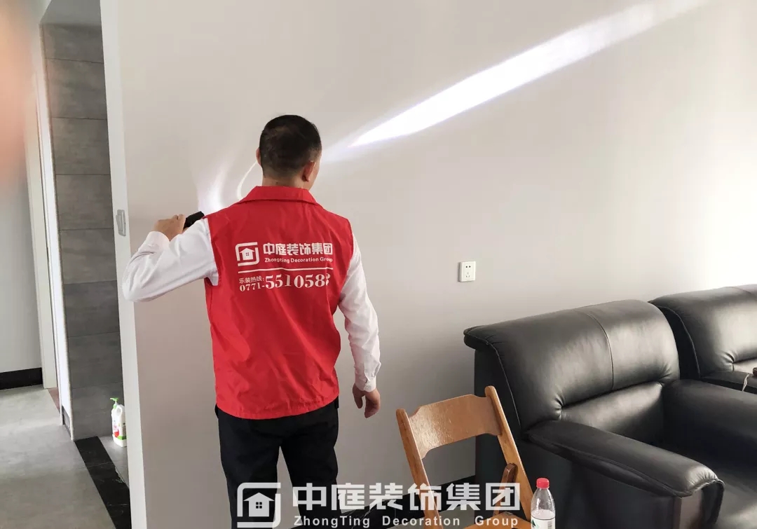 檢查瓷磚鋪貼的平整度是否達到集團施工標準