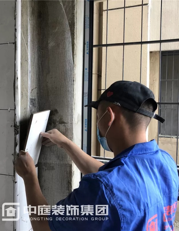 綠色安全防護網(wǎng)醒目的顏色為工人的施工安全保駕護航,同時也可以防止在陽臺切割瓷磚時造成大量的灰塵飄逸出去,對小區(qū)環(huán)境造成影響。