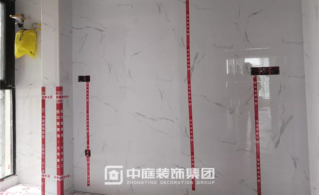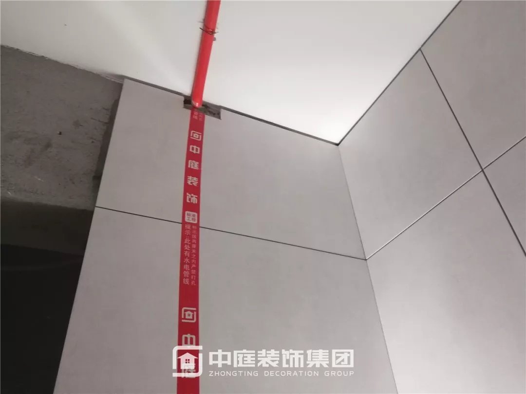 瓷磚鋪貼后做水電標(biāo)識,避免后期成品安裝打孔破壞水電線管;同時對瓷磚陽角進行保護,以免搬運材料時磕碰。