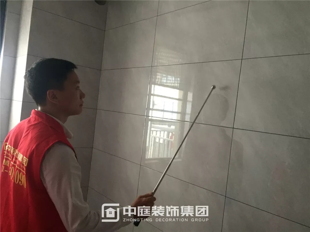 檢查瓷磚鋪貼是否平整干凈,有無錯貼漏貼