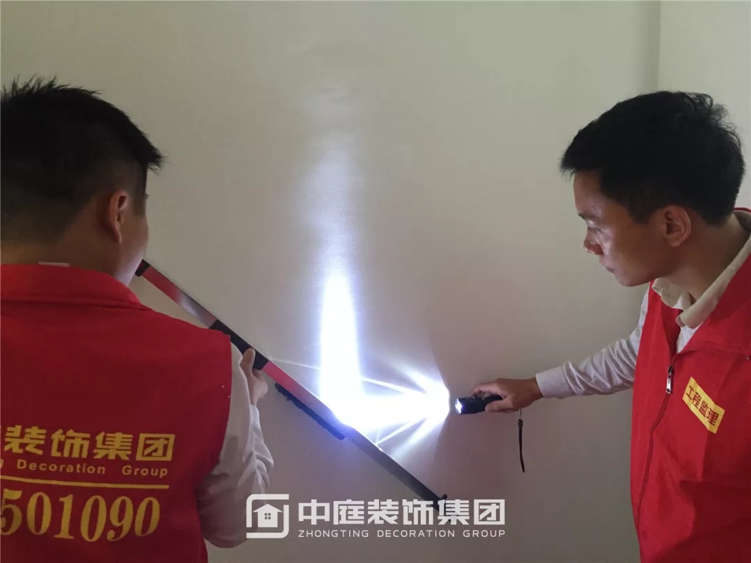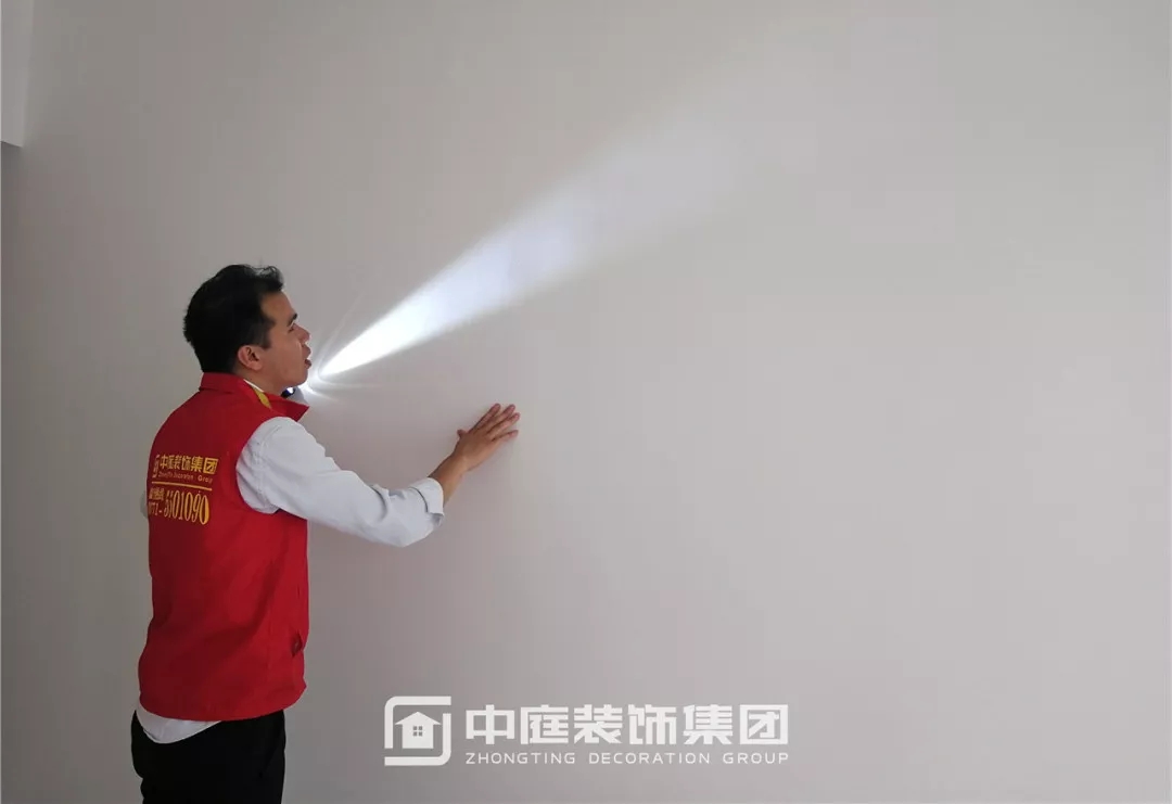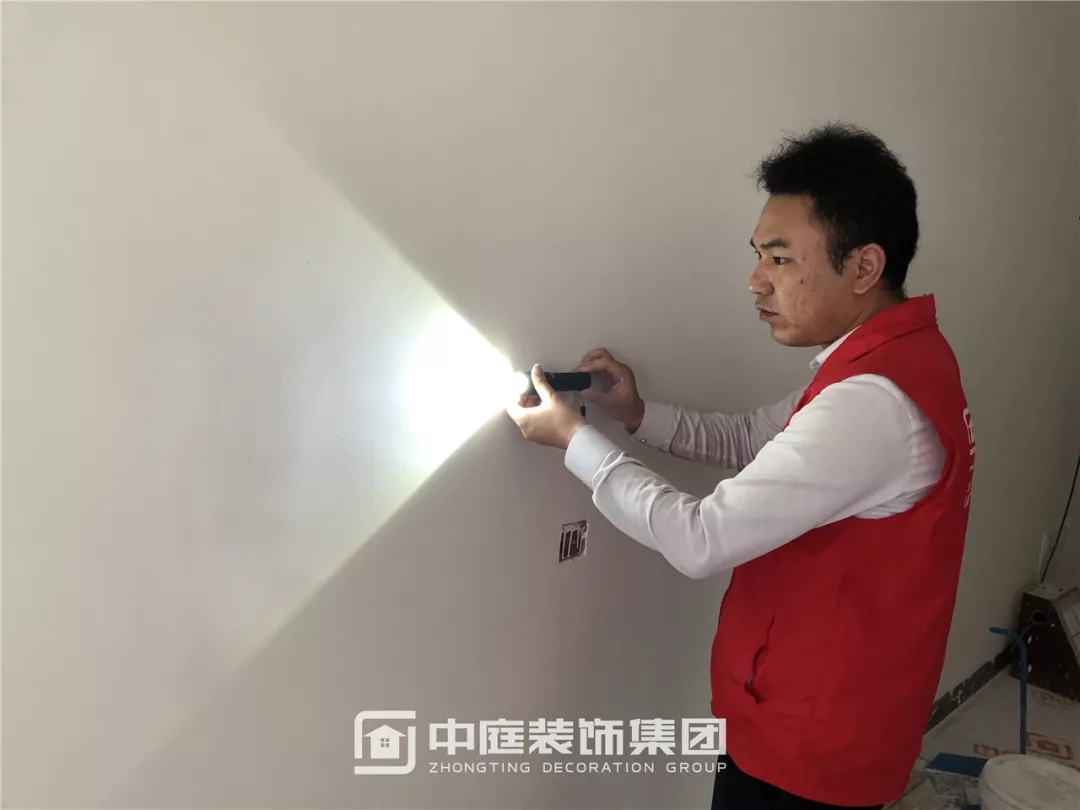 使用強光手電檢查墻面膩子施工是否達標(biāo)