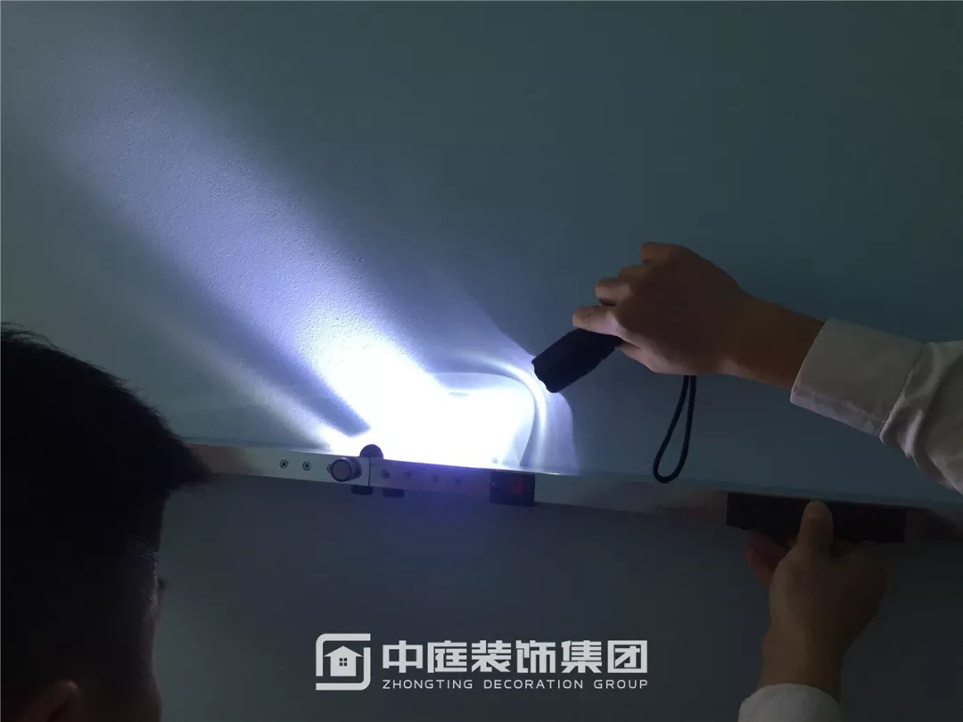 強光光線無法穿透靠尺并產(chǎn)生折射,墻面平整度達標(biāo)。