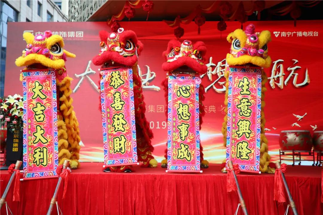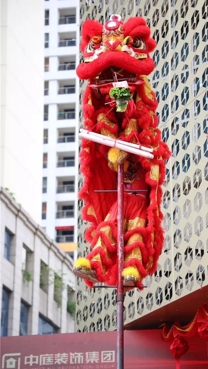 在鏗鏘有力、熱鬧非凡的鑼鼓聲中,火舞祥獅將寓意著“生財”的生菜送到集團(tuán)總裁丁胡手中,為中庭裝飾集團(tuán)獻(xiàn)上祥瑞的祝福。