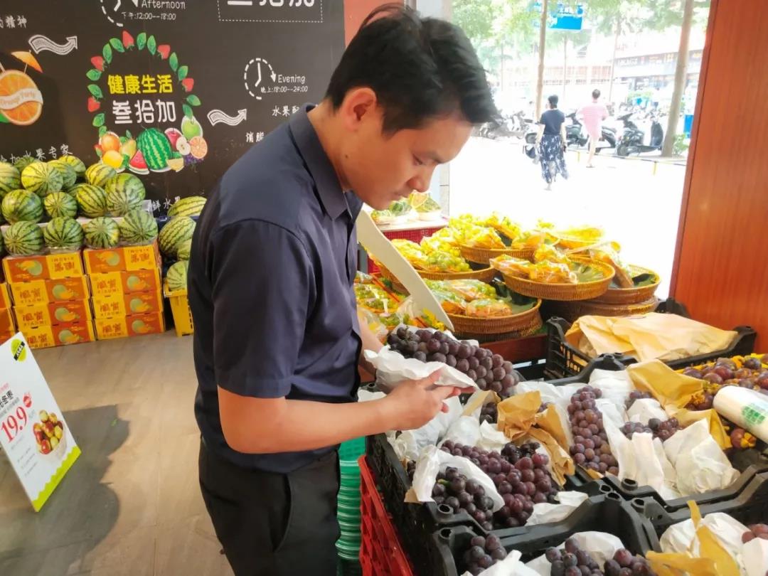質(zhì)管中心總經(jīng)理助理王尉為老羅精心挑選水果