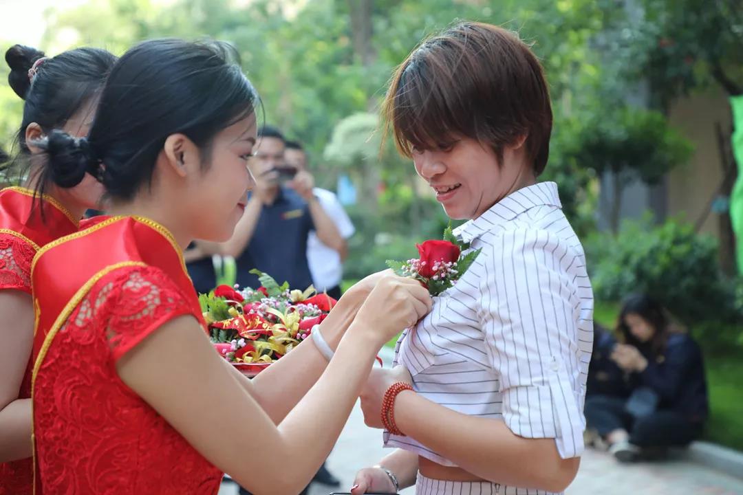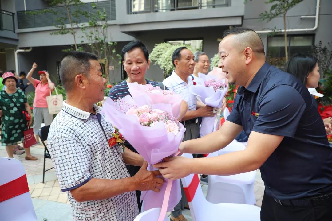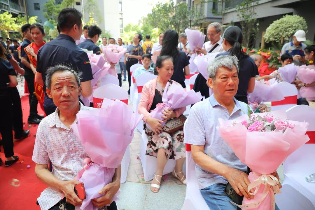 ▲同時(shí),臺(tái)下的中庭家人們?yōu)闃I(yè)主獻(xiàn)上手捧花,并送上誠(chéng)摯的祝福。