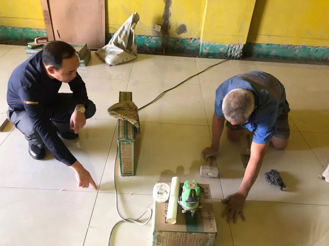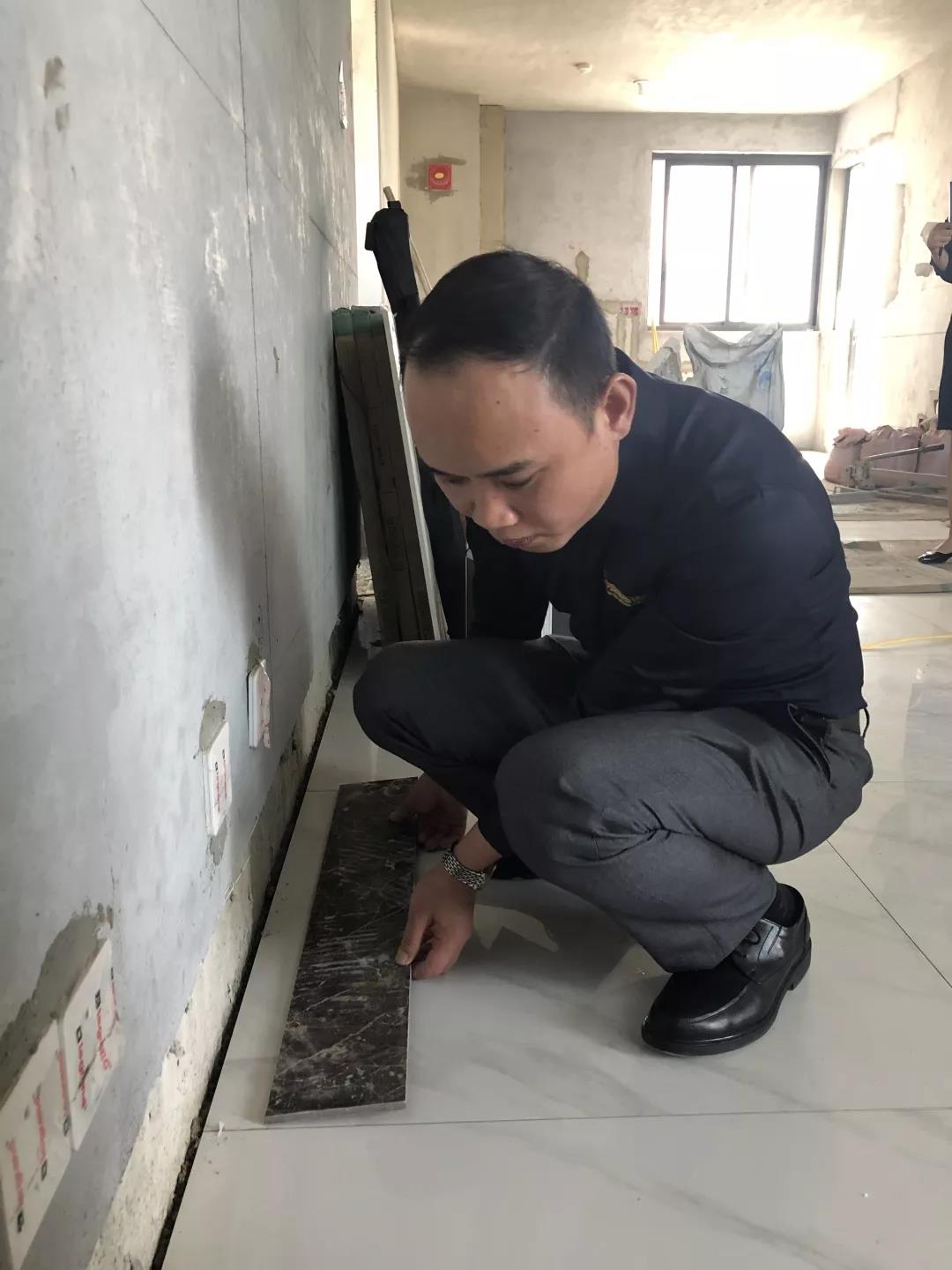 距離廣西教育廳住宅裝修集體開工儀式已過去一月有余,部分工地施工相繼進(jìn)入鋪磚階段。作為教育廳住宅裝修工程總指揮,肩負(fù)著集團(tuán)的使命和業(yè)主朋友們的信任,集團(tuán)副總裁、工程質(zhì)量管理中心總經(jīng)理吳文戰(zhàn)時(shí)刻牽掛著教育廳工地進(jìn)展情況。10月30日,吳總帶領(lǐng)質(zhì)管中心工程管理團(tuán)隊(duì)赴工地現(xiàn)場對工程材料、質(zhì)量和服務(wù)三大項(xiàng)進(jìn)行突擊檢查!
