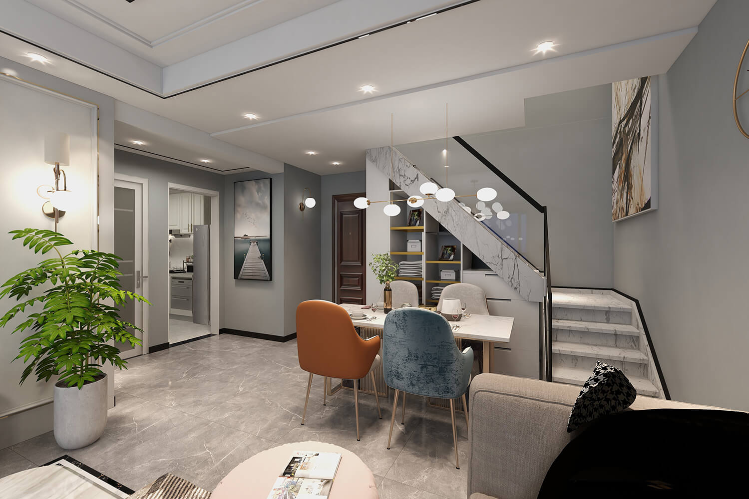 瀏覽量:479客廳比較寬敞,最大限度地利用空間。視覺(jué)空間看起來(lái)很寬敞,燈光效果也很好??蛷d家具方面,采用灰色色調(diào)和金屬元素點(diǎn)綴,營(yíng)造平靜而不失時(shí)尚氛圍。地面用灰色的地磚來(lái)裝飾,使整個(gè)客廳顯得簡(jiǎn)單舒適,顯露出一種奢華感。奢華與金錢或其他一切無(wú)關(guān),就像臥室里沒(méi)有奢華的裝飾或華麗的裝飾一樣。只有合適的燈光舒適度。一種無(wú)負(fù)擔(dān)、高質(zhì)量的生活態(tài)度。