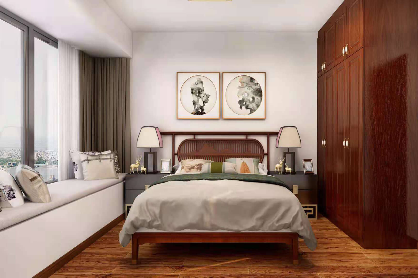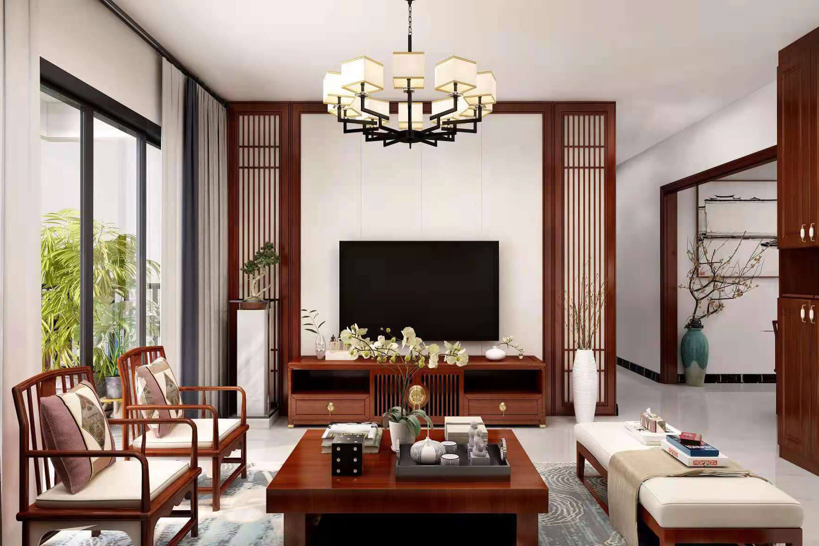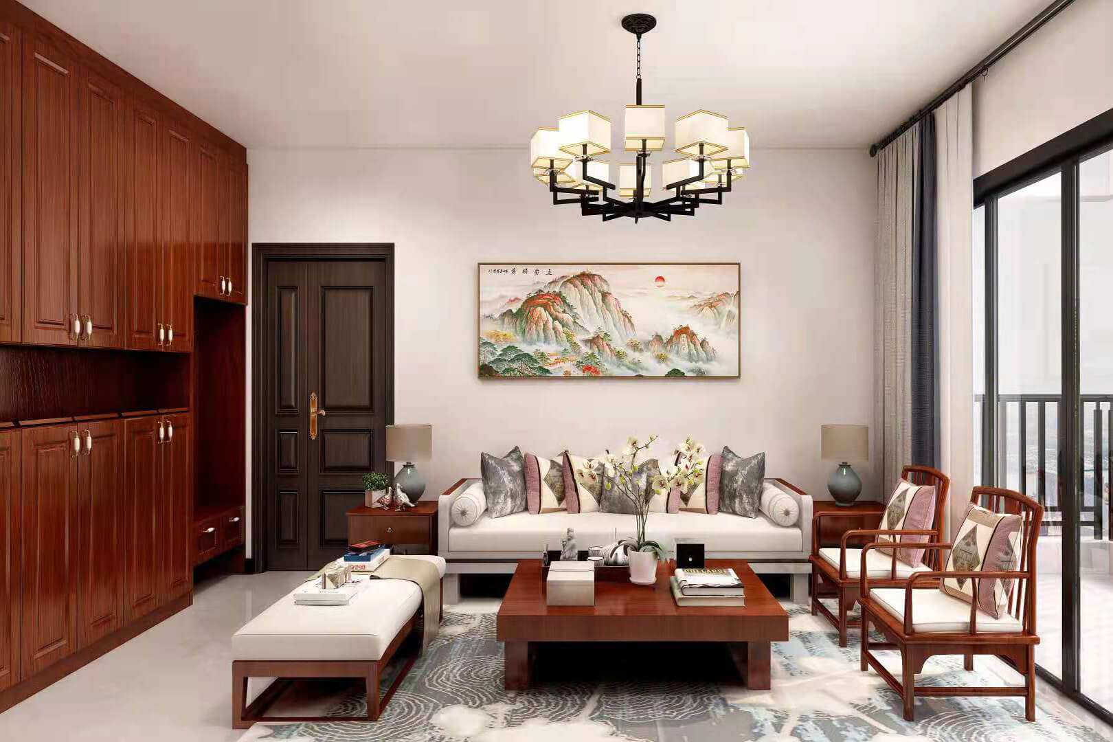 瀏覽量:552房子整體家具以紅木為主??蛷d采用白色地磚和留墻面與家具搭配讓顏色看起來更為簡(jiǎn)潔,不做裝飾的吊頂讓整體的空間看起來更寬大。房間采用紅木地板與房間家具色彩呼應(yīng),墻面留白用水墨畫裝飾讓房間裝飾更豐富,也讓色彩更多了層次感。