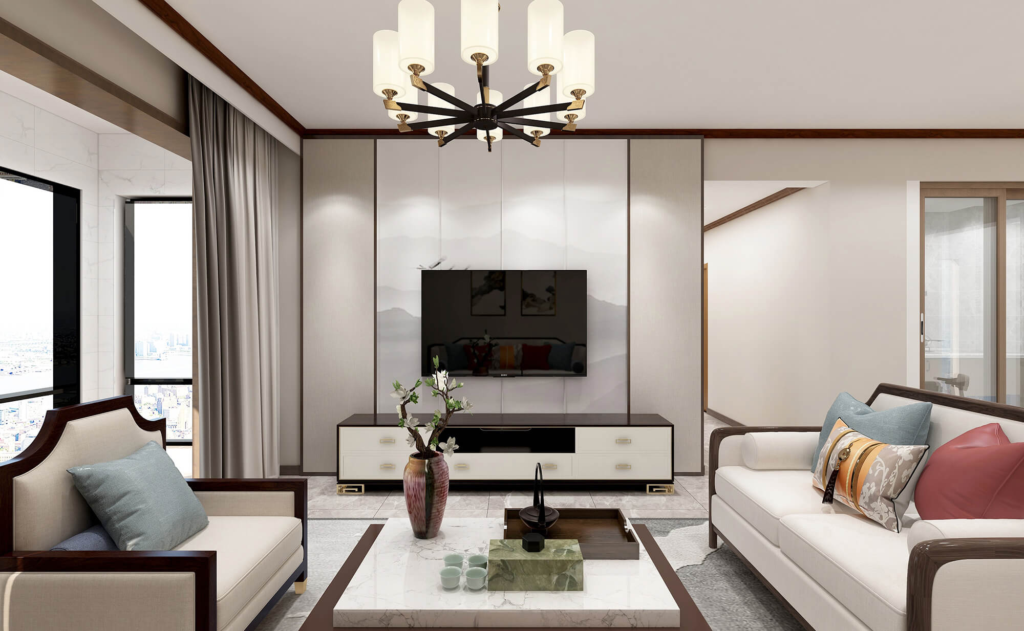 蟠龍小區(qū)125㎡新中式風格案例
