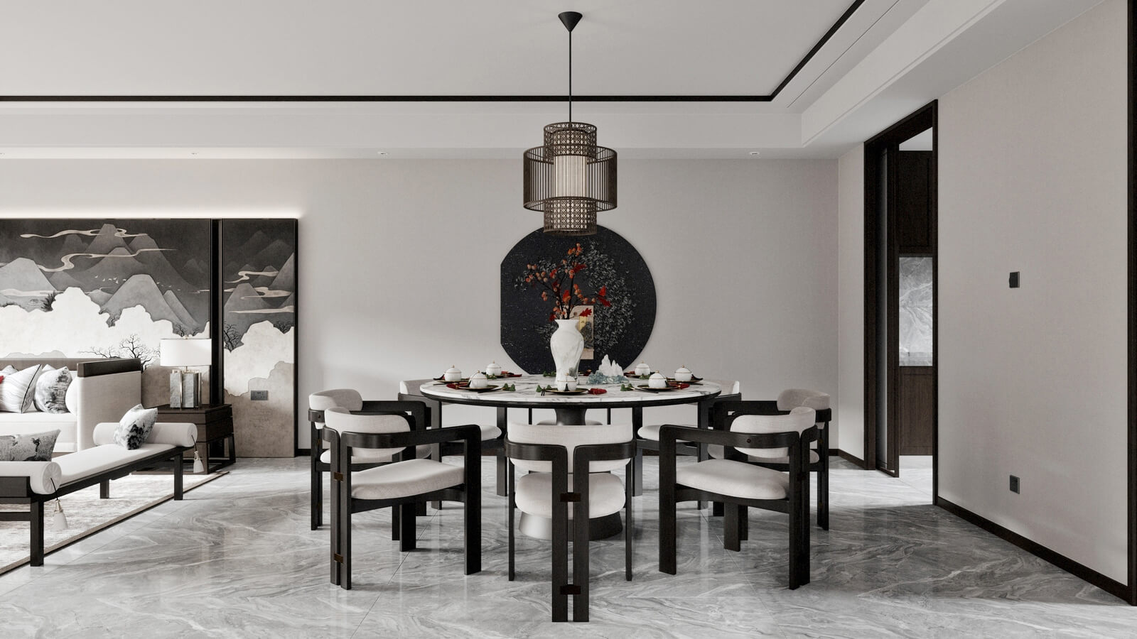 瀏覽量:1139設(shè)計(jì)師打破了人們對(duì)傳統(tǒng)中式風(fēng)格的固有觀念,加入了許多現(xiàn)代化的設(shè)計(jì)元素。其中,中國(guó)風(fēng)味一點(diǎn)兒也沒少。山水畫,瓷器,深色桌椅,這些富含古典韻味的裝飾,完美地與現(xiàn)代化的空間融為一體,體現(xiàn)出靜謐的美感。
