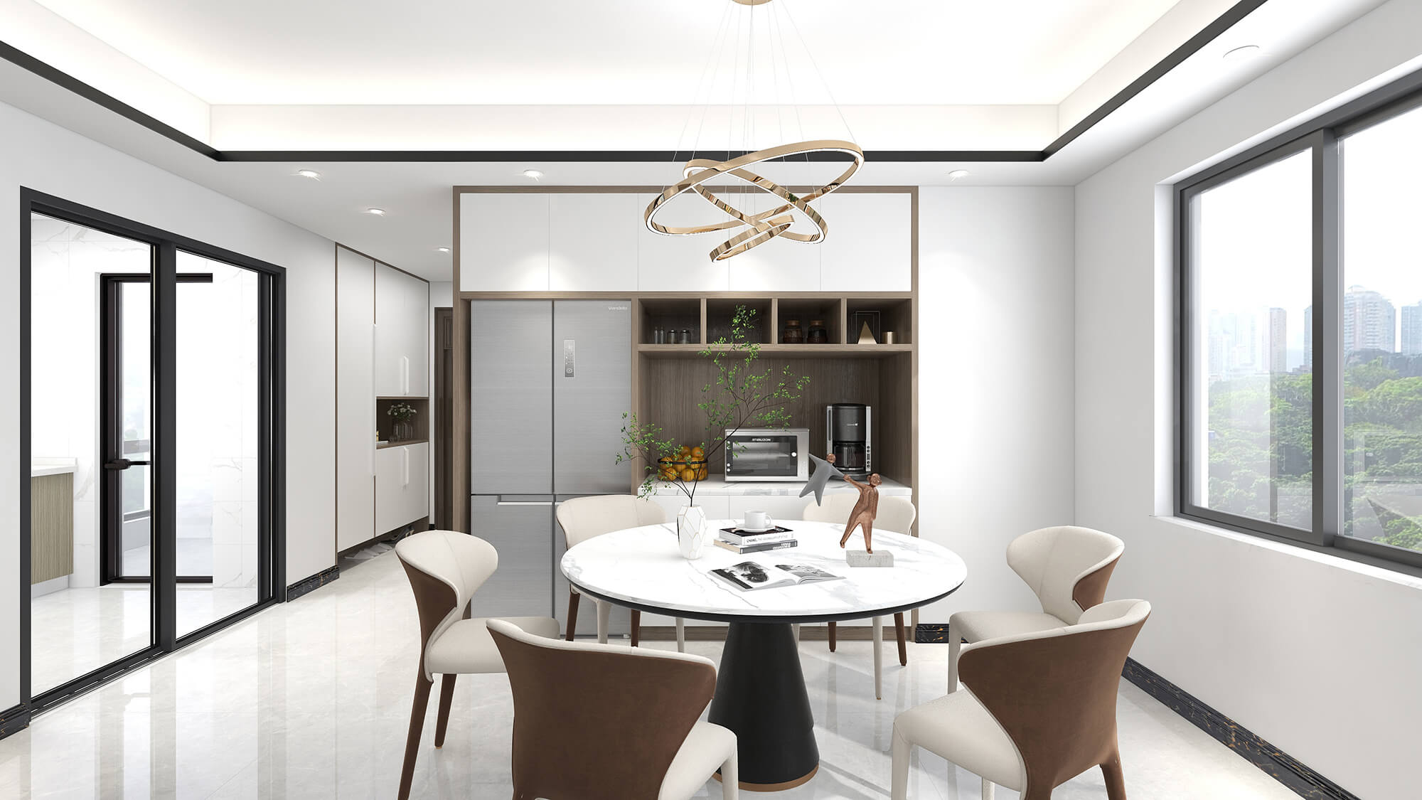 此案例為131㎡的現(xiàn)代簡約風格,設計師充分考慮了內外環(huán)境的關系,引景入室,引光入室,寬敞明朗的平面在開闊的落地窗的加持下,延伸出美妙的生活場景體驗。