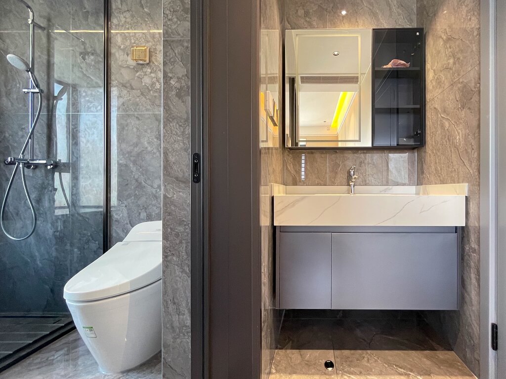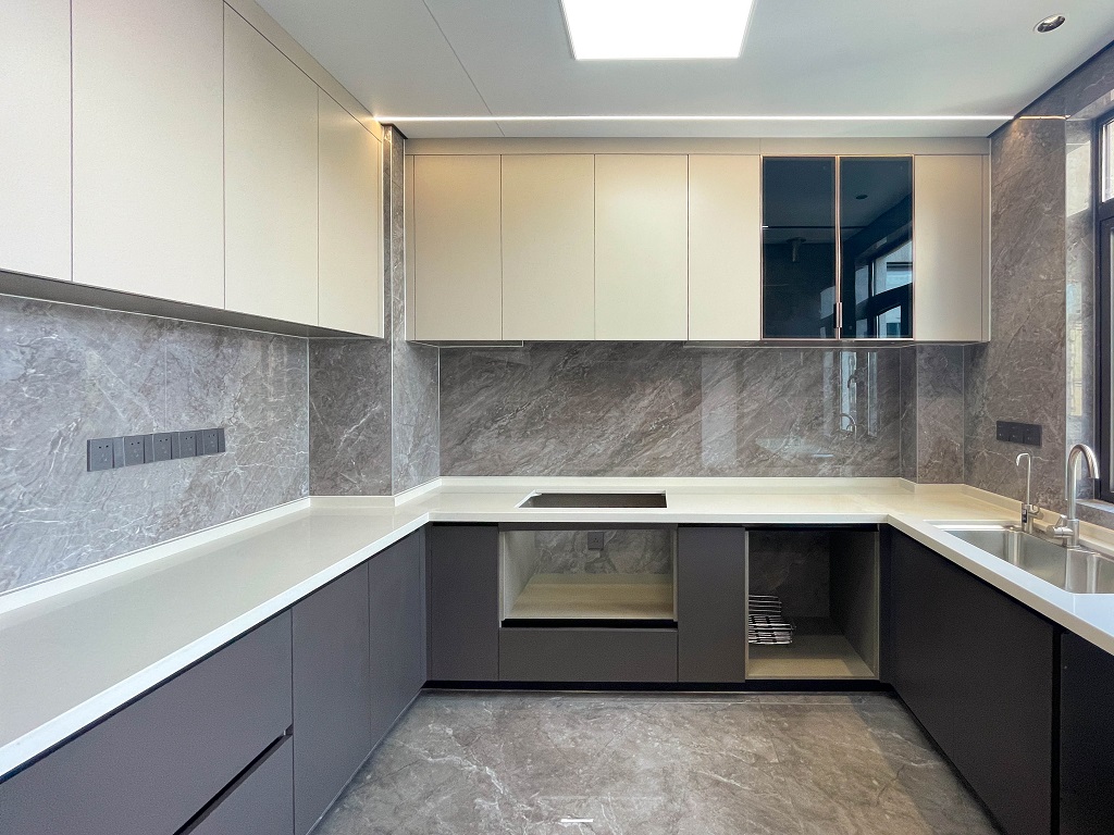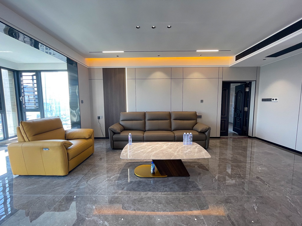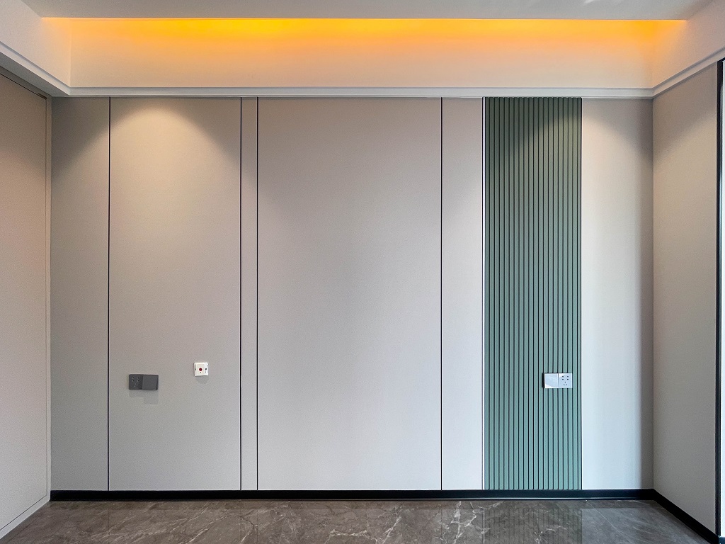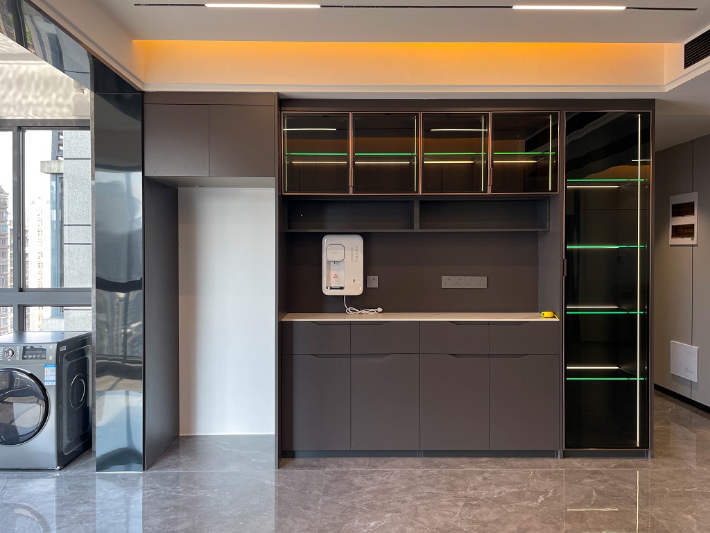 瀏覽量:460整屋采用黑色亮面護(hù)墻板,與全屋通鋪的灰色瓷磚形成和諧統(tǒng)一的整體風(fēng)格,無(wú)主燈的設(shè)計(jì),通過(guò)局部照明和燈帶的巧妙運(yùn)用,營(yíng)造出柔和的光線(xiàn)氛圍。雙眼皮吊頂和兩邊吊頂疊加的設(shè)計(jì),為空間增添一份獨(dú)特的層次感。