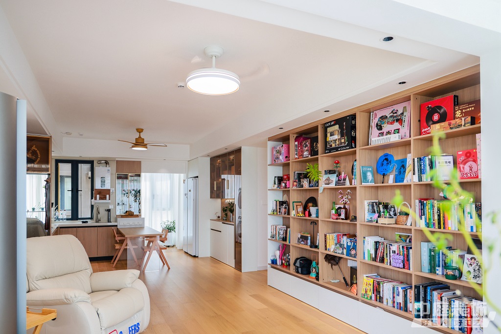 瀏覽量:889仿佛步入了一個(gè)自然與簡約交織的溫馨空間。淺色調(diào)的木質(zhì)地板營造出一種質(zhì)樸而不失高雅的氛圍。客廳中央,去客廳化的設(shè)計(jì),一排原木色到頂書架擺滿精心挑選的物件和書籍,一進(jìn)門就能感受家的溫暖。