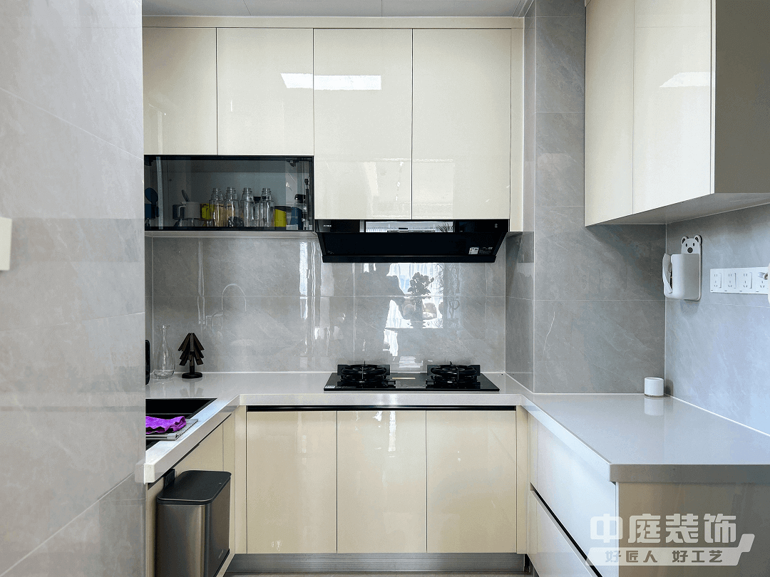 餐廳:開放廚房與餐廳結(jié)合,形成餐、廚一體空間。所有廚房電器嵌入式設(shè)計,并按照業(yè)主烹飪習(xí)慣布置,保證操作動線便捷、合理。