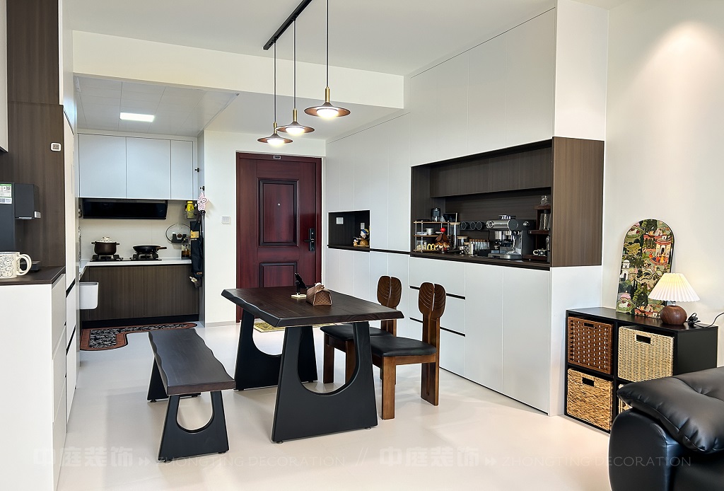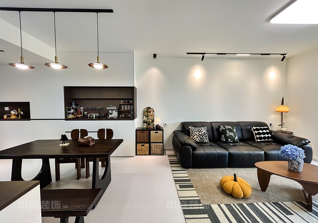瀏覽量:74這套房從普通居所蛻變?yōu)槎际携熡鷪?chǎng),客餐廳以黑白棕營(yíng)造高級(jí)松弛感,咖啡角、藝術(shù)畫、游戲區(qū)藏著主人對(duì)生活的熱愛,餐廚煙火與雅致共生,每處角落的陳設(shè)都是靈魂的妥帖安放,是裝滿故事與溫度的私屬堡壘。
