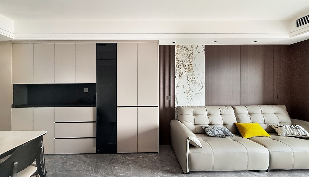 瀏覽量:94整體是簡(jiǎn)約高級(jí)的風(fēng)格,米棕色調(diào)溫柔又大氣,朋友來(lái)都夸很有質(zhì)感!皮質(zhì)沙發(fā)癱著超舒服,亮黃色抱枕一下子讓空間活潑起來(lái)~ 收納做得很隱蔽,家里永遠(yuǎn)整整齊齊。臥室的窗簾一拉,就是專(zhuān)屬的靜謐小天地。在這樣的家里,吃飯、追劇、發(fā)呆,每一刻都好愜意~這大概就是把日子過(guò)成詩(shī)的感覺(jué)吧~
