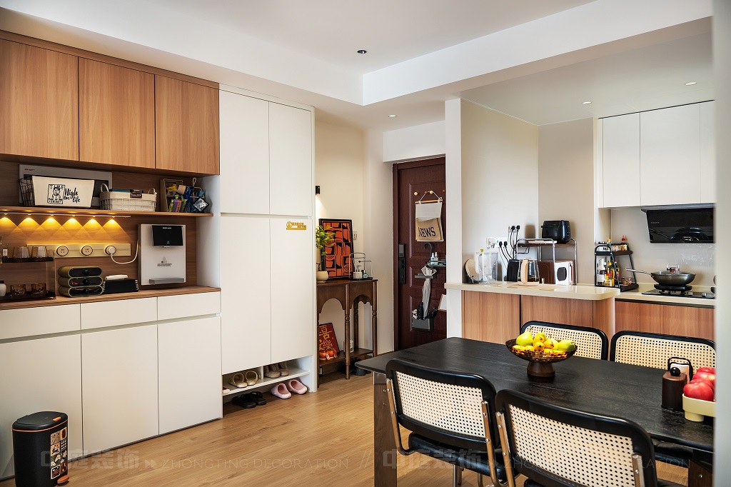瀏覽量:109每一處細(xì)節(jié),都是他們對(duì)“把日子過(guò)成詩(shī),讓家裝滿故事”的詮釋。以原木的溫潤(rùn)、白調(diào)的清爽為基底,在玄關(guān)處嵌入復(fù)古邊幾,擺上藝術(shù)感的裝飾畫(huà),仿佛時(shí)光在此打了個(gè)溫柔的結(jié);餐廚區(qū)的咖啡角裝滿對(duì)生活的小確幸,與開(kāi)放式廚房的煙火氣交融,是晨起的咖啡香與深夜的飯菜香的浪漫邂逅;客廳里,黑色皮沙發(fā)搭配復(fù)古風(fēng)抱枕,一旁的藝術(shù)綠植蜿蜒生長(zhǎng),就像主人對(duì)生活的熱愛(ài)肆意又熱烈。