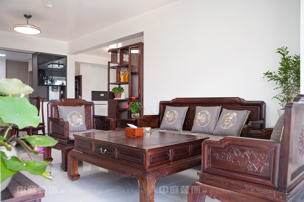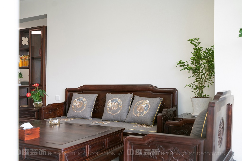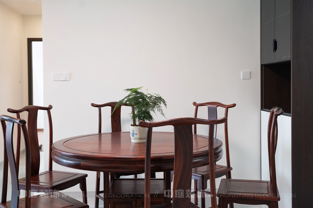 瀏覽量:167全屋以深色實(shí)木家具為主,雕花工藝精致細(xì)膩,盡顯中式家具的古樸質(zhì)感。搭配帶有傳統(tǒng)紋樣的抱枕,在細(xì)節(jié)處傳遞中式美學(xué)。空間中綠植點(diǎn)綴其間,與木質(zhì)家具相得益彰,營造出自然清新的氛圍。無論是客廳的沙發(fā)組合,還是茶室的茶桌茶具,亦或是餐廳的圓桌設(shè)計(jì),都在簡約的現(xiàn)代空間里,勾勒出中式家居的典雅與詩意。
