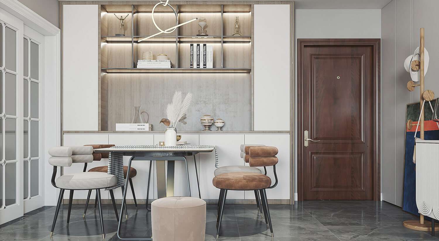 瀏覽量:382現(xiàn)代輕奢風(fēng)格注重細(xì)節(jié)處理,如用金屬或水晶飾品點綴,營造出高貴典雅的氛圍。整體選用大面積的白色,再選用淺棕色的色調(diào)作為點綴,整體富有質(zhì)感又有生活的溫馨。