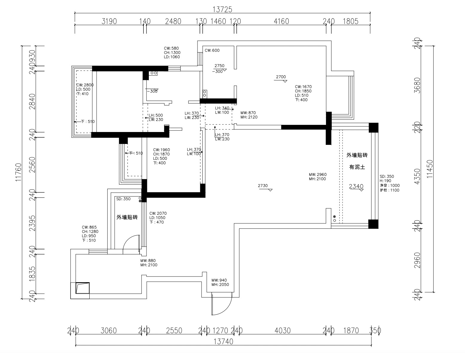 原始戶型雖為雙陽(yáng)臺(tái)設(shè)計(jì),但由于S形的客餐廳錯(cuò)位結(jié)構(gòu),使得整個(gè)空間無(wú)論是采光、通風(fēng)上,都不算是非常理想。兩個(gè)次臥大小分別僅為7.4平米和7平米,給人的體感上顯得非常擁促。